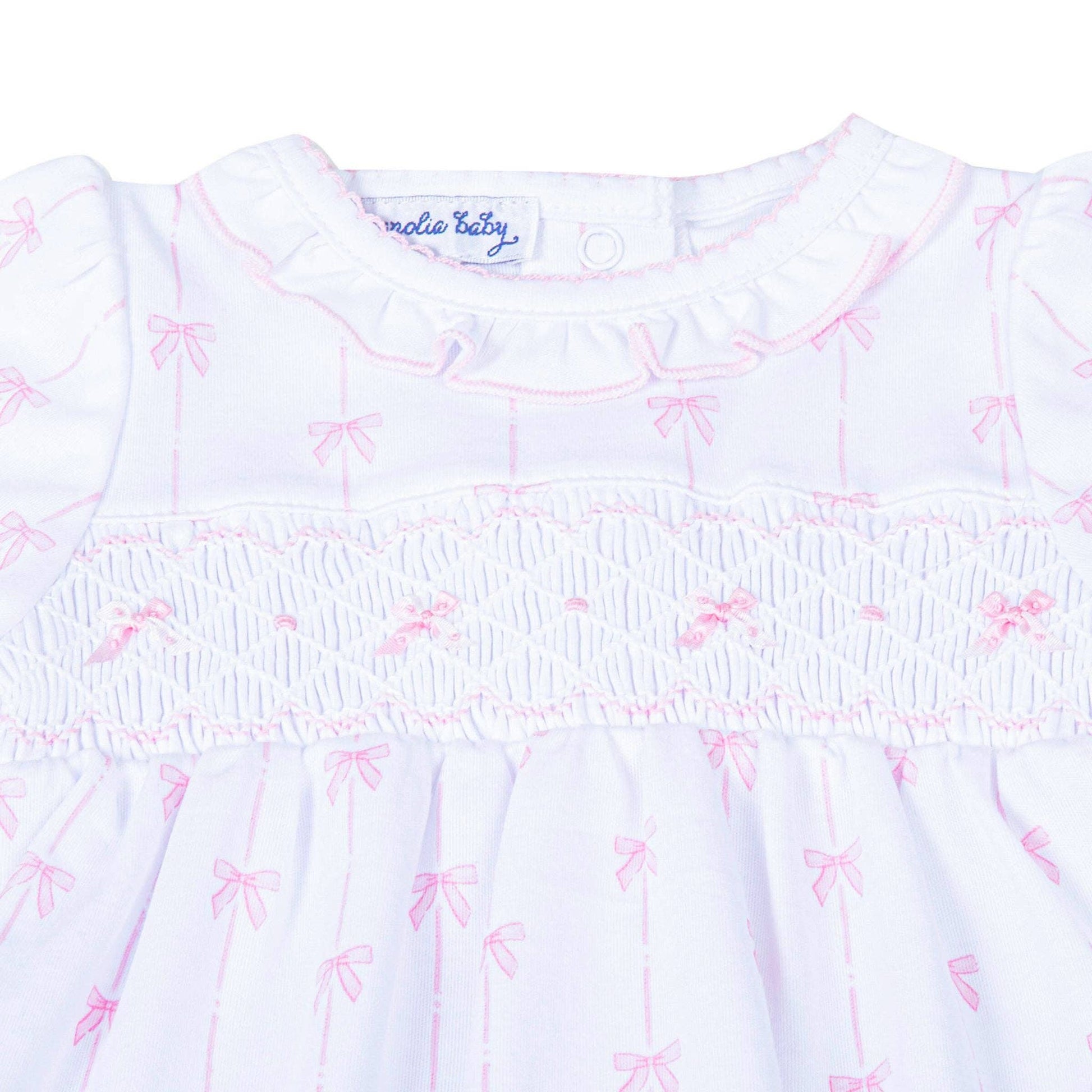 * Hand-Smocked Detail: Exquisite detail across the chest with delicate pink bows.