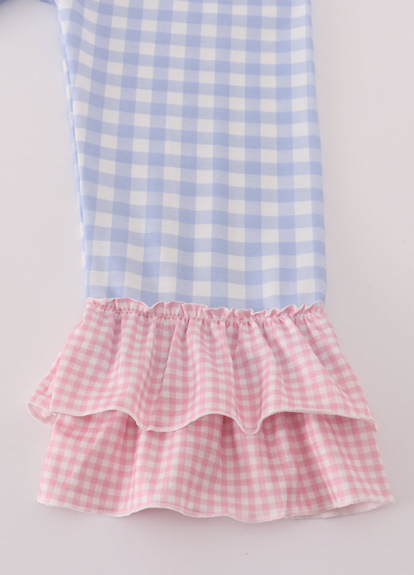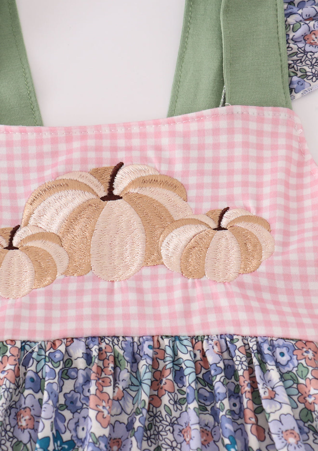 Step into whimsy with this Blue Floral Pumpkin Embroidery Ruffle Pants Set. Featuring charming pumpkin embroidery and delicate ruffles, this playful outfit adds a touch of fun to your wardrobe. Perfect for cozy days or festive occasions, it combines comfort with a unique, eye-catching design that's sure to brighten your look.