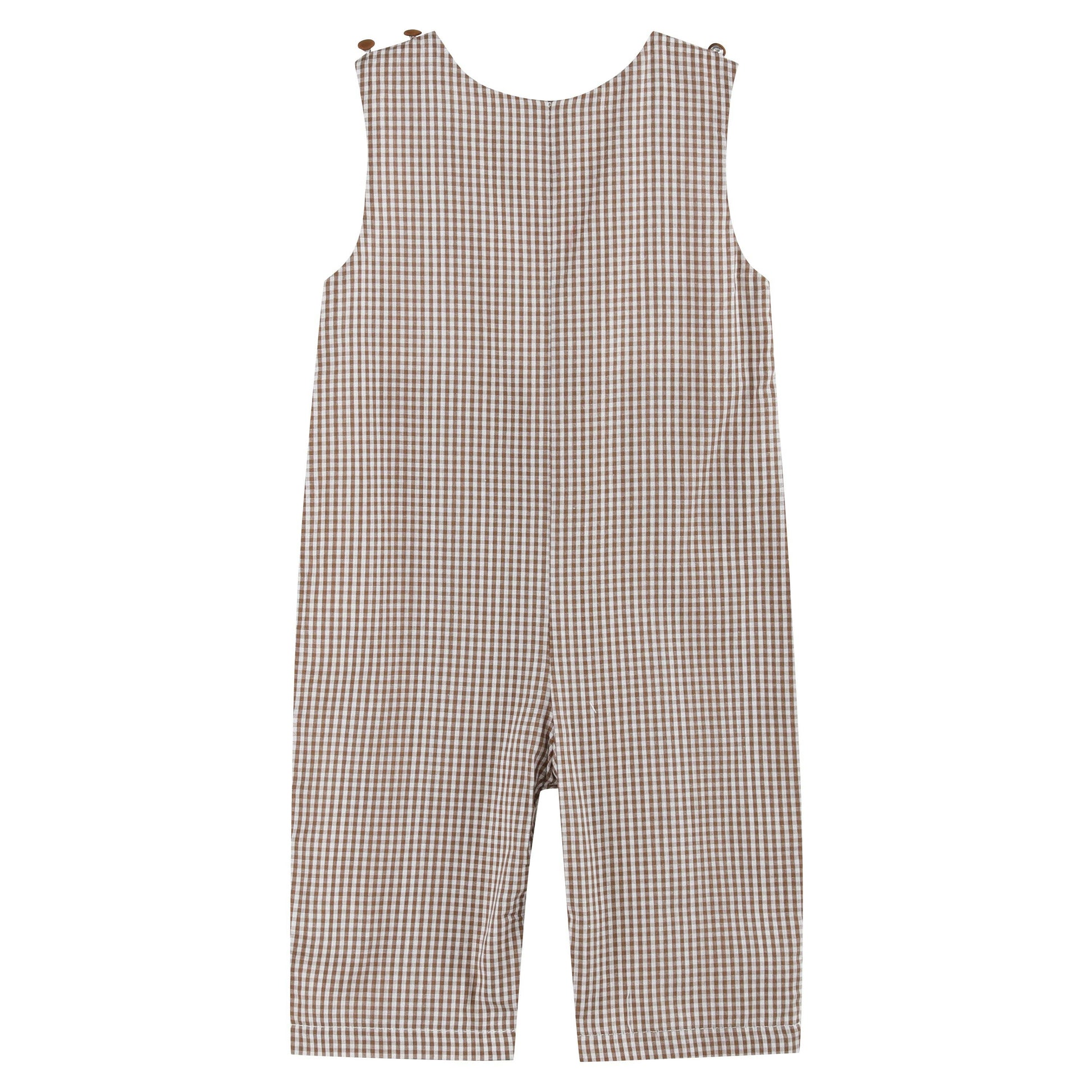 Brown Gingham Pumpkin and Corn Tractor Smocked Overalls