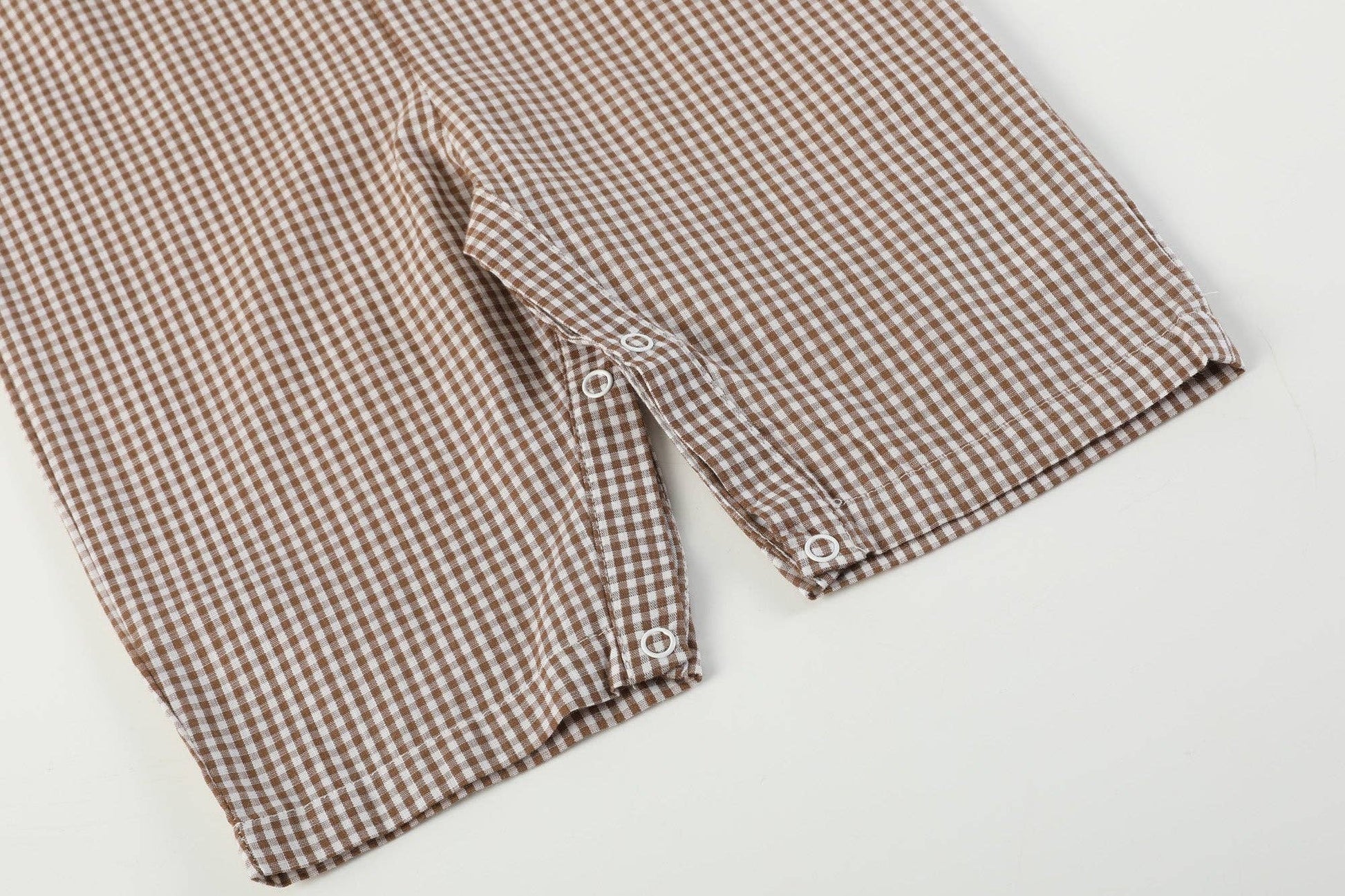 Harvest some smiles with our Brown Gingham Pumpkin and Corn Tractor Smocked Overalls! These overalls are the wheely cute choice for your little farmer, featuring smocking at the chest and embroidered tractors and pumpkins. Perfect for fall frolics and adorable tractor tales, they're the pick of the patch for your autumn adventures!