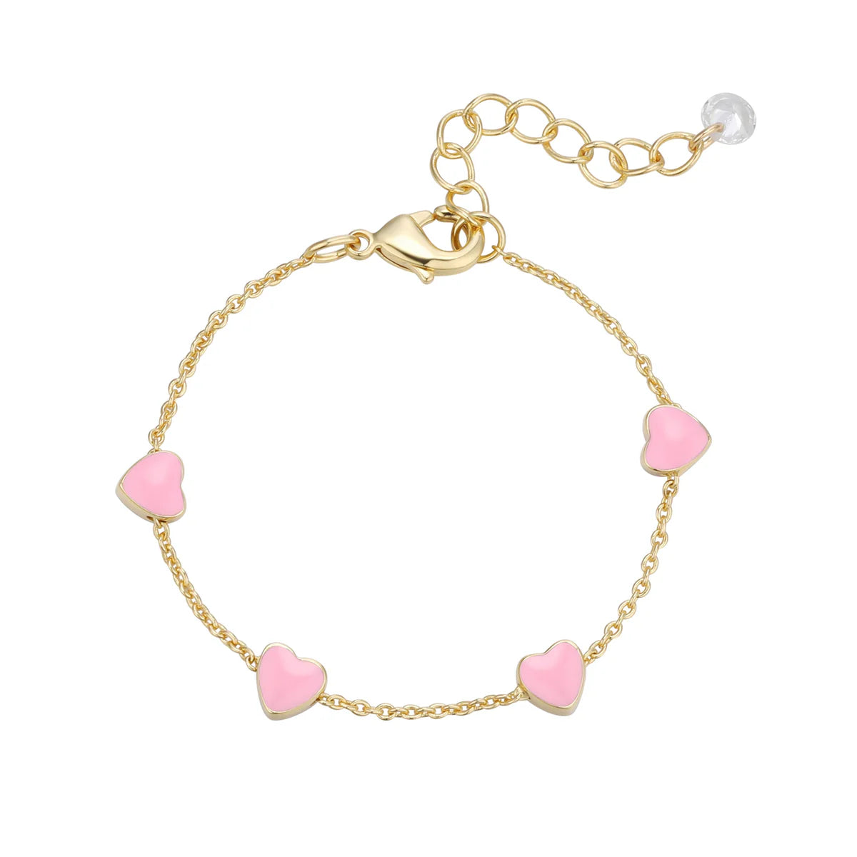 A charming baby bracelet with stationary heart links. Adjustable 5.5" - 6.5" and secures with lobster clasp.