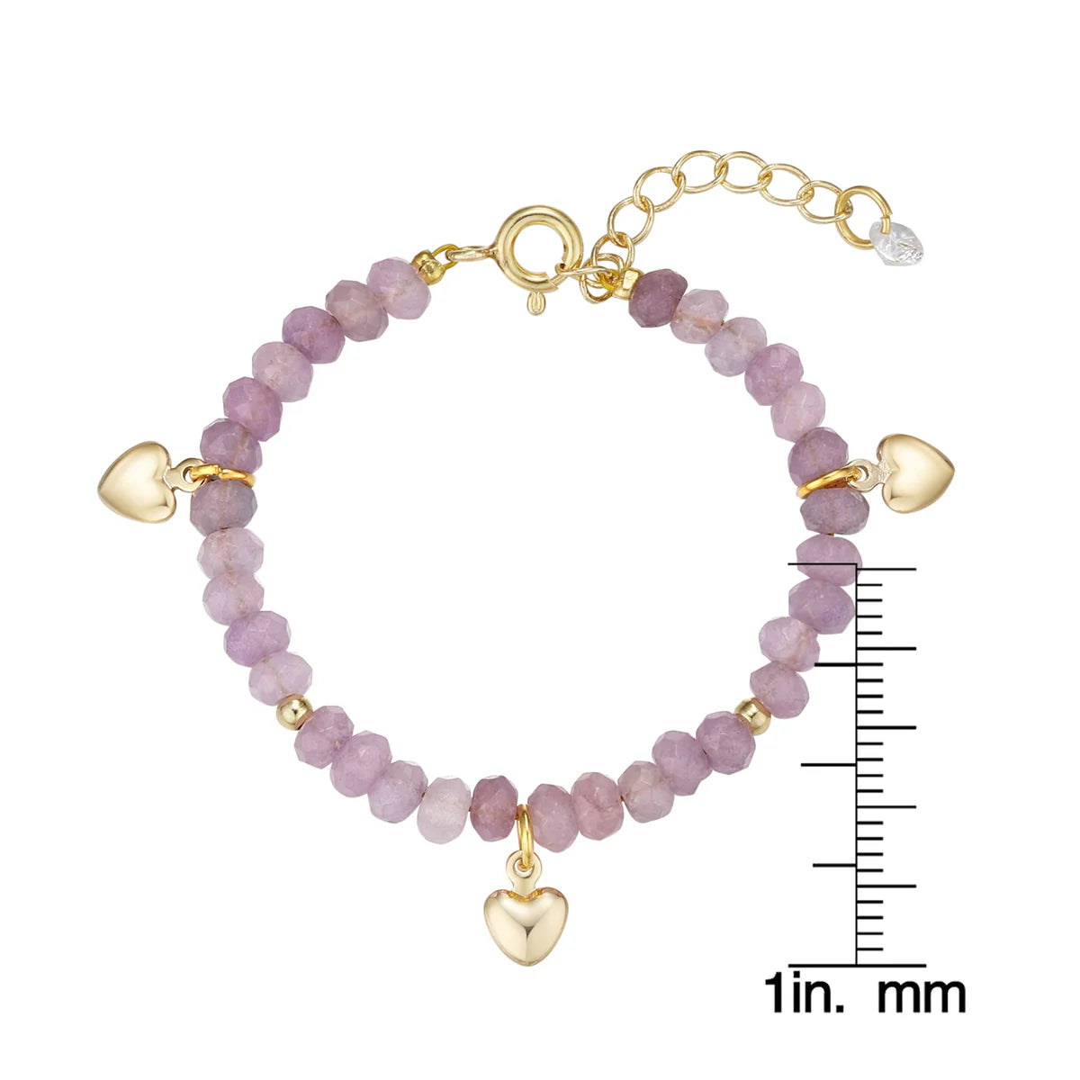 Amethyst Bead Bracelet with Heart Charms (Baby)