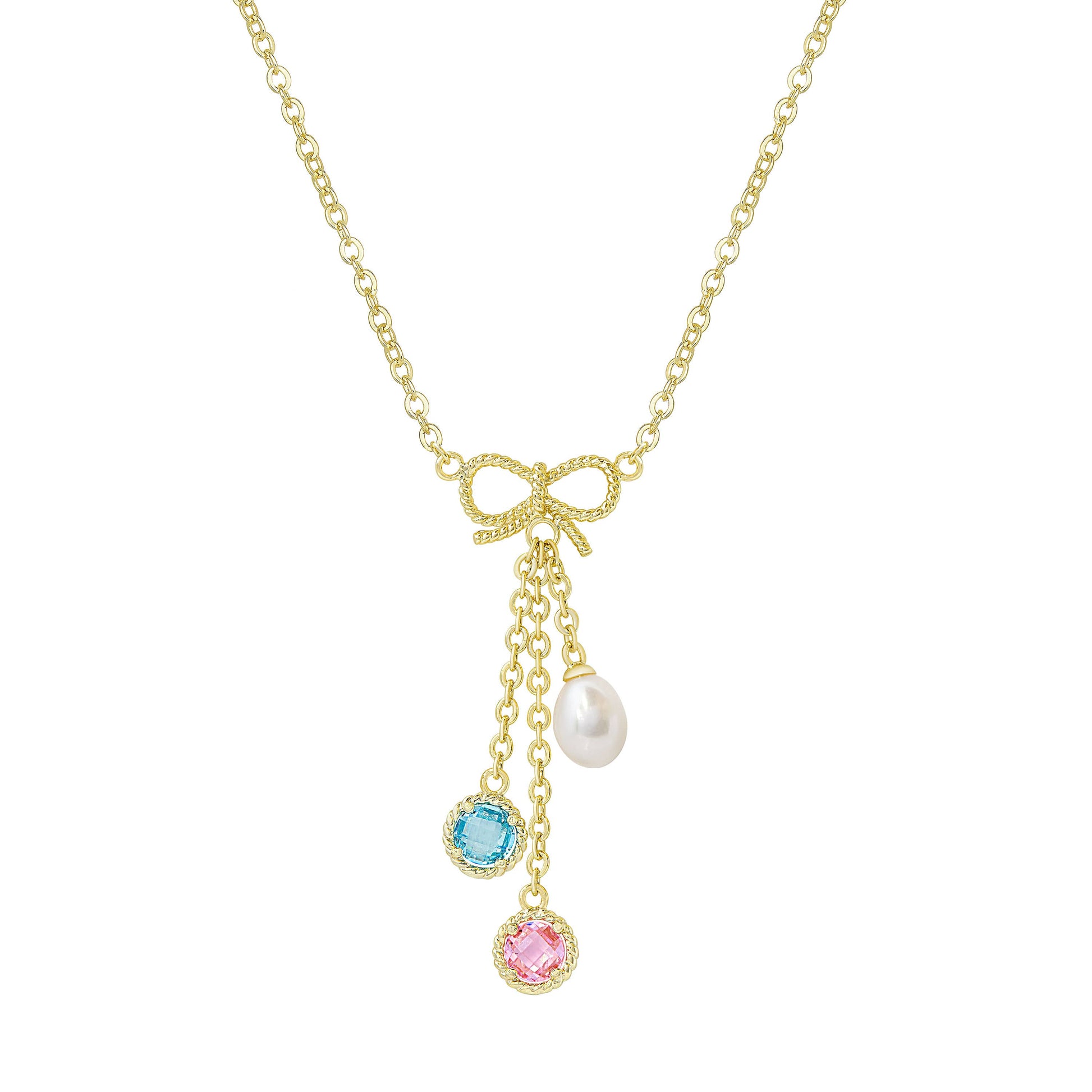 CZ And Pearl - Bow Charms Necklace: Pink/Blue
