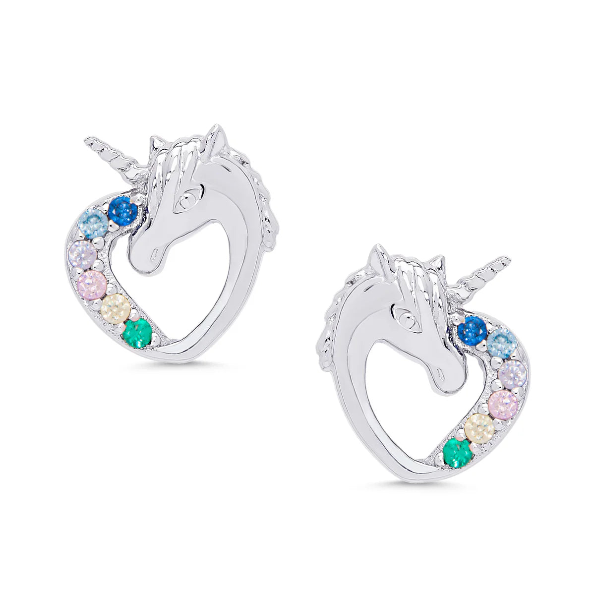 CZ Heart Unicorn Stud Earrings in Sterling Silver
