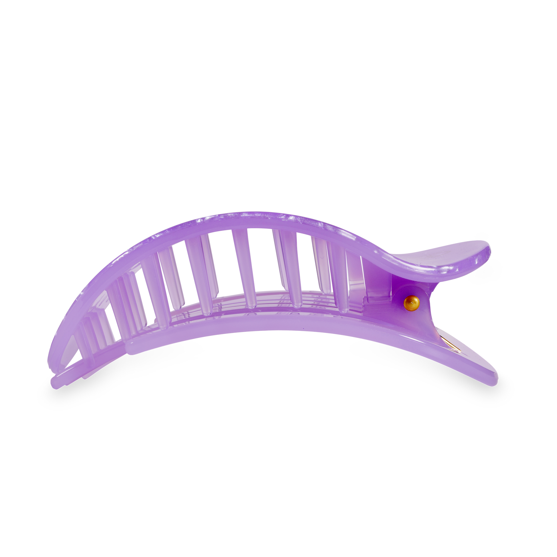 Lay flat and relax with the new TELETIES Lavender Mist Large Flat Round Hair Clip in Purple. This hair clip is designed to allow you to lay back flat, do yoga, or sit comfortably in a seat with a headrest, and it is made with the same material that is nearly unbreakable.