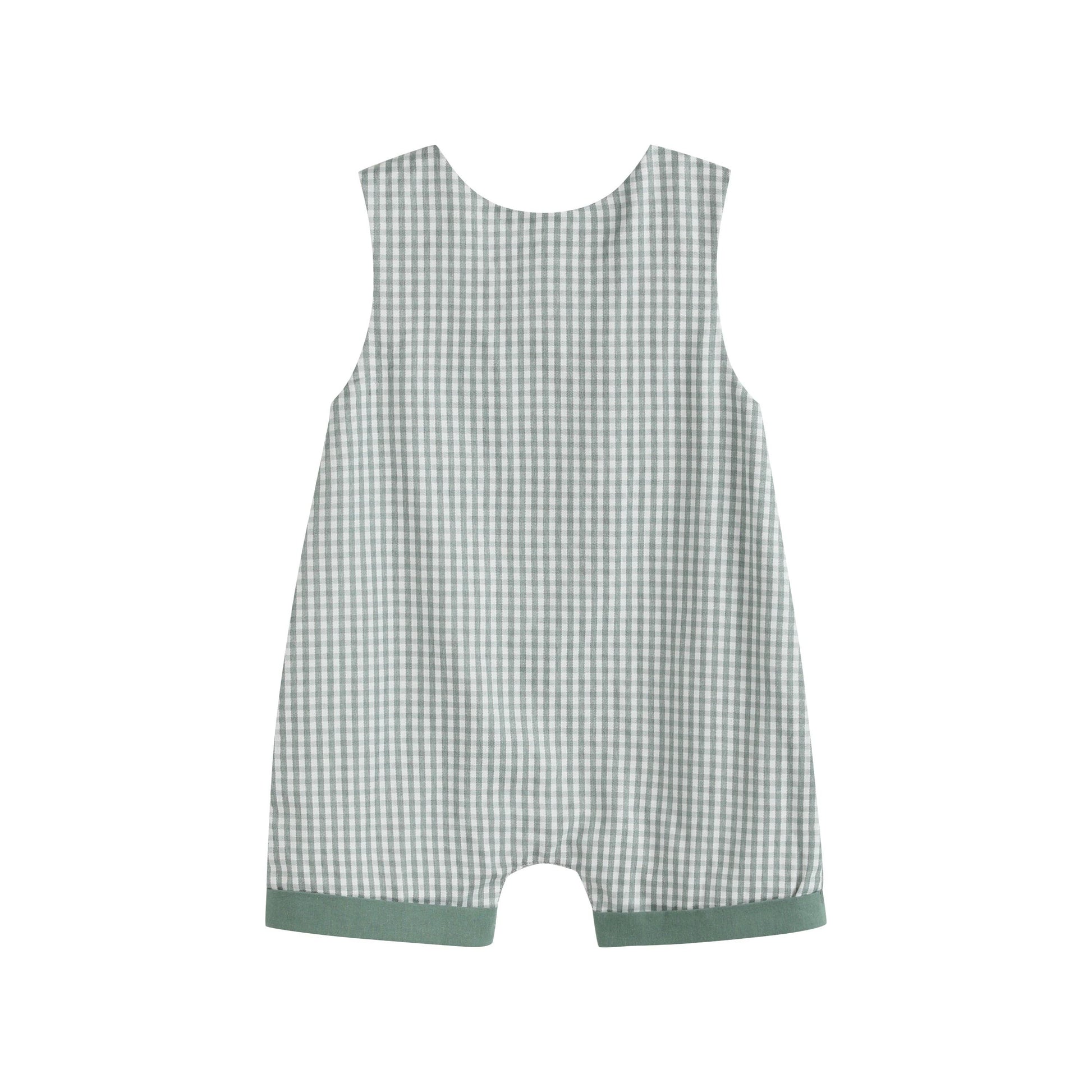Green Gingham Dinosaur Smocked Shortalls