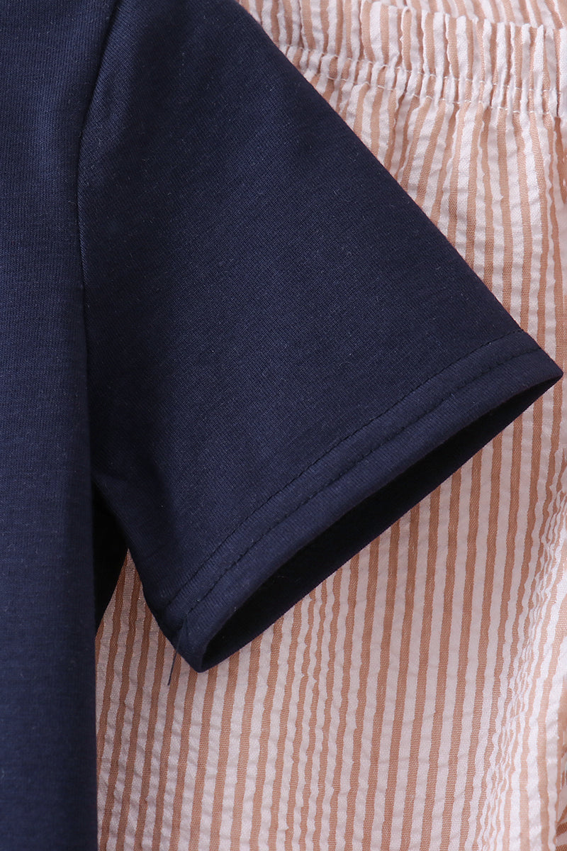 Navy seersucker Game Day Sports embroidery stripe pants set