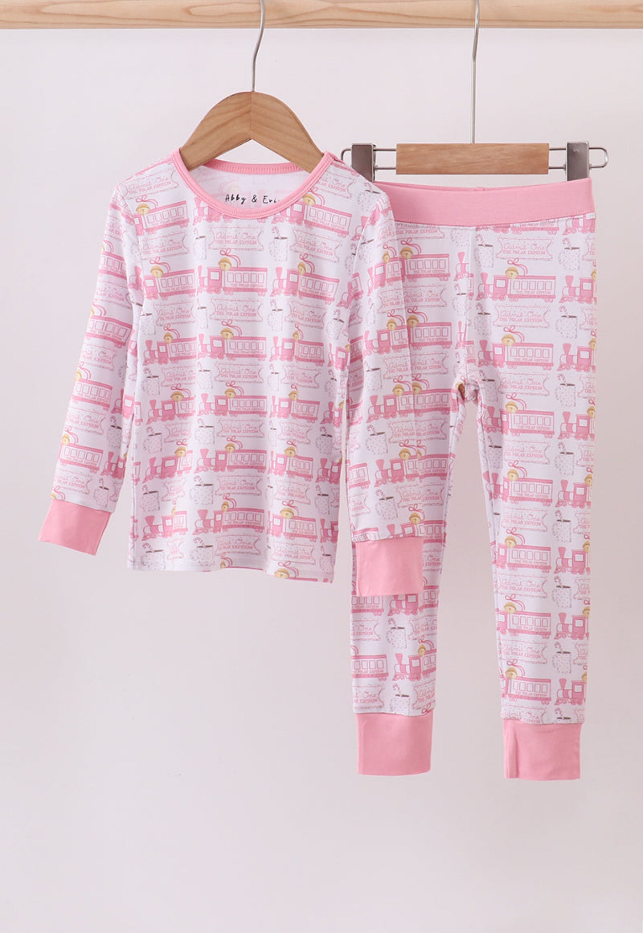Pink train bamboo pajamas set