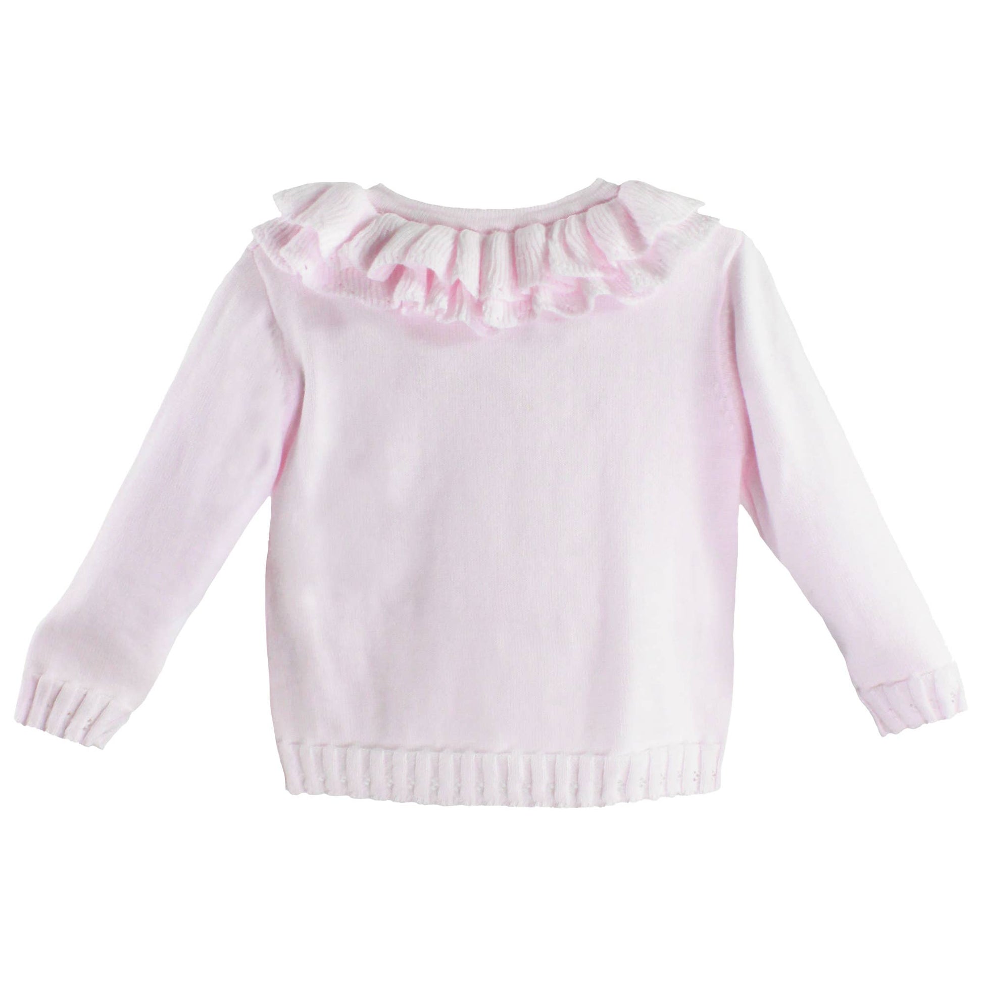 Pointelle Ruffle Collar Cardigan: Pink