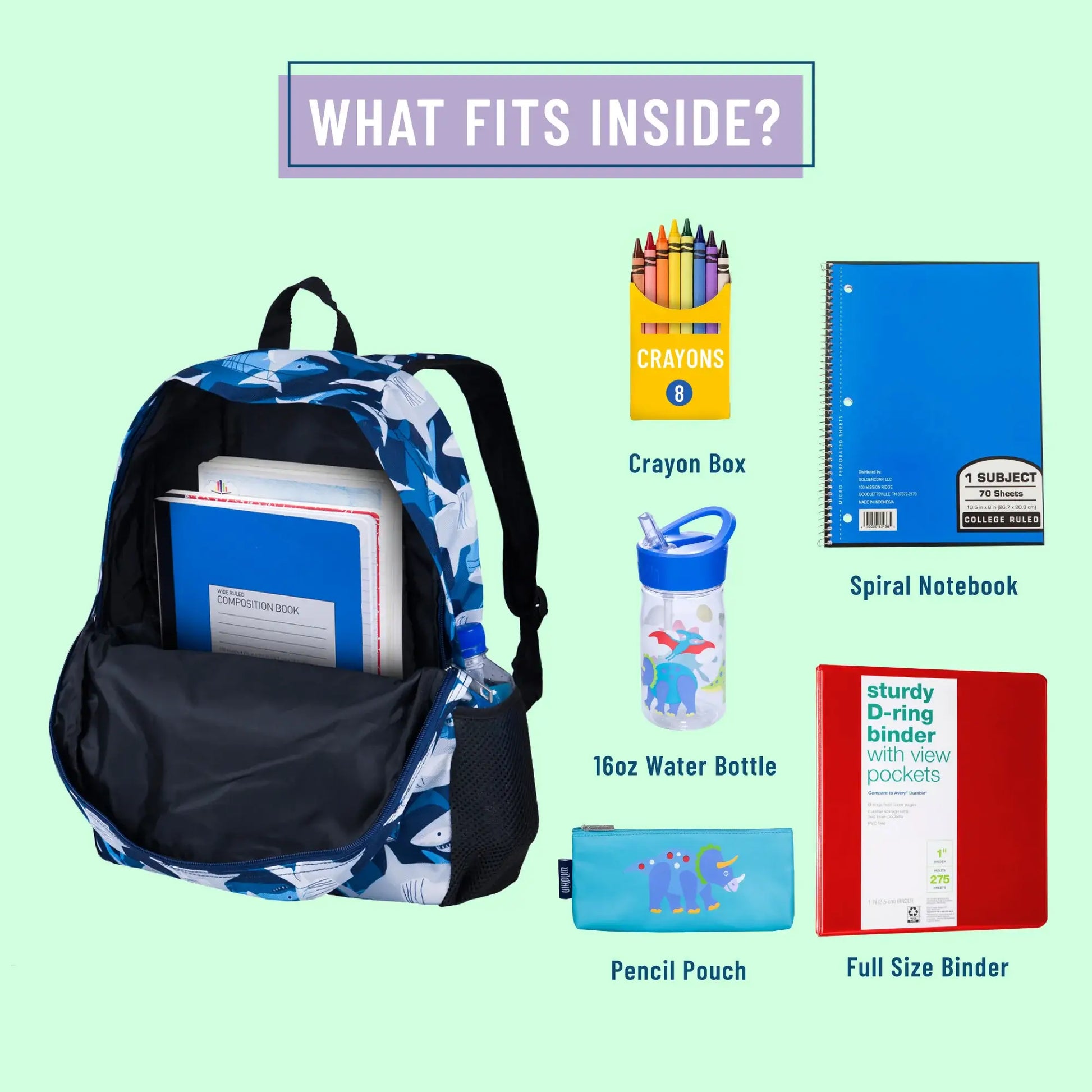 Your child will be the talk of the playground with the Wildkin 16 Inch Backpack! Measuring 16 x 12.5 x 9.5 inches, the 16 Inch Backpack is just the right size. Our 16 Inch Backpack features two padded adjustable shoulder straps, a padded back, a durable top handle, two zippered compartments, and mesh side pockets. Made from super durable 600-denier polyester fabric with an interior moisture-resistant nylon lining, the 16 Inch Backpack is capable of handling anything you throw at it. Each 16 Inch Backpack was designed to coordinate with other Wildkin gear, so go ahead and make a theme out of it! From lunch boxes, to duffel bags, to sleeping bags, your child will love having their favorite designs with them on-the-go.