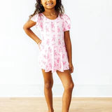 Our leotards are perfect for your tiny ballerina's first dance class. Our founder created them when she couldn't find a cute leotard, in a tiny size, for Mila's first dance class. Everything was either too big or the fit was totally wrong. Not only did Mila wear these leotards for dance class, she wore them to play around the house or in the backyard with rain boots. Mix and Match our Twirling en Pointe print collection for sisters, cousins, or BFFs FIT - FABRIC - CARE: * Sizes run slightly large * Model is Wearing size 5/6 * 95% Polyester/5% Spandex * Machine Wash/Tumble Dry Low ***Please note this is a leotard (not a bodysuit) so it does not have snaps for diaper changes***
