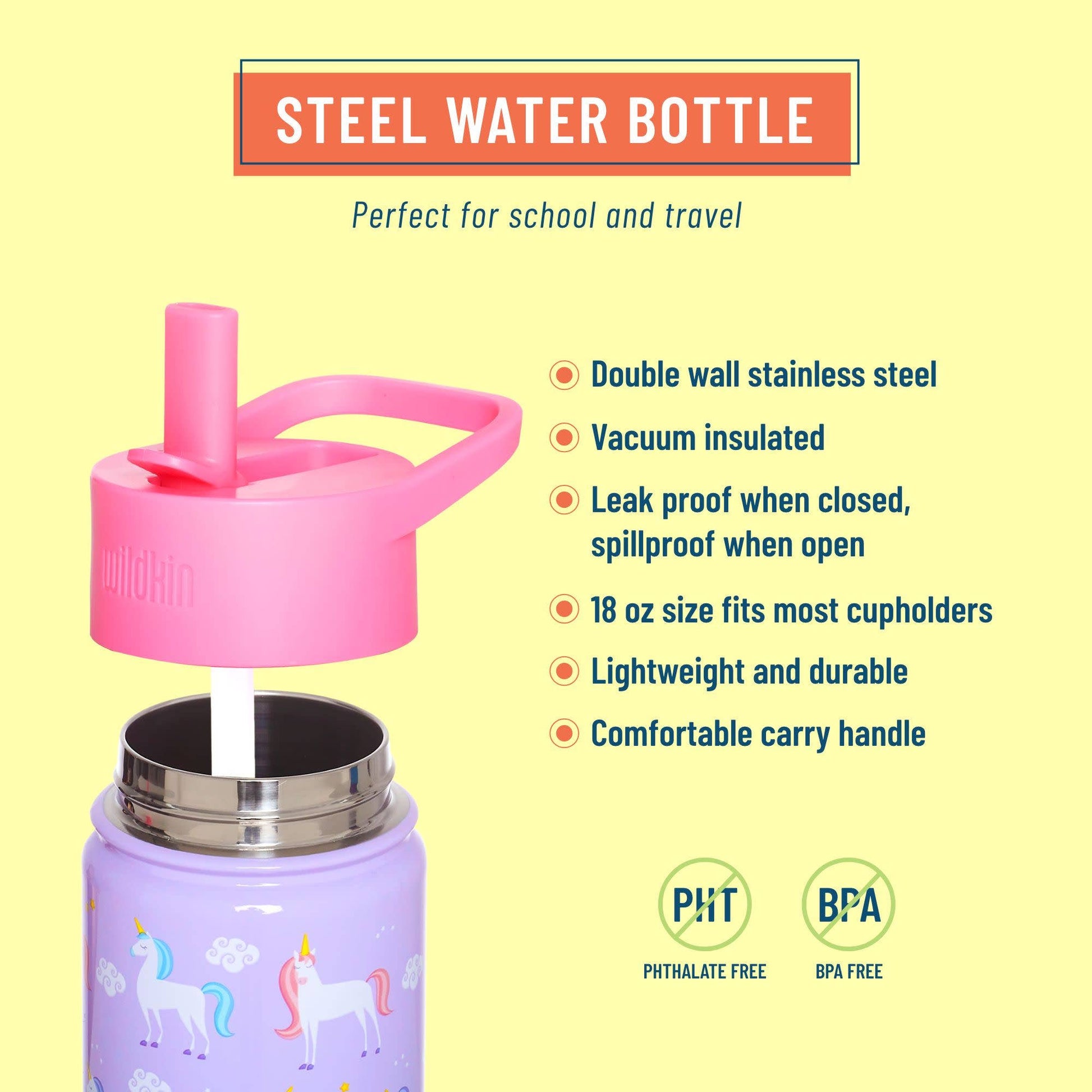 Wildkin's stainless steel water bottle combines an eye-catching design that kids and adults will love. This water bottle’s just-right, cupholder compatible size makes it perfect for keeping you hydrated for school, sports or travel. Leakproof when closed and spillproof when open, lightweight and easy to carry, you'll will find it easy to tote around. You'll love the BPA and phthalate free materials and designs that easily coordinate with other Wildkin backpacks and lunchboxes.