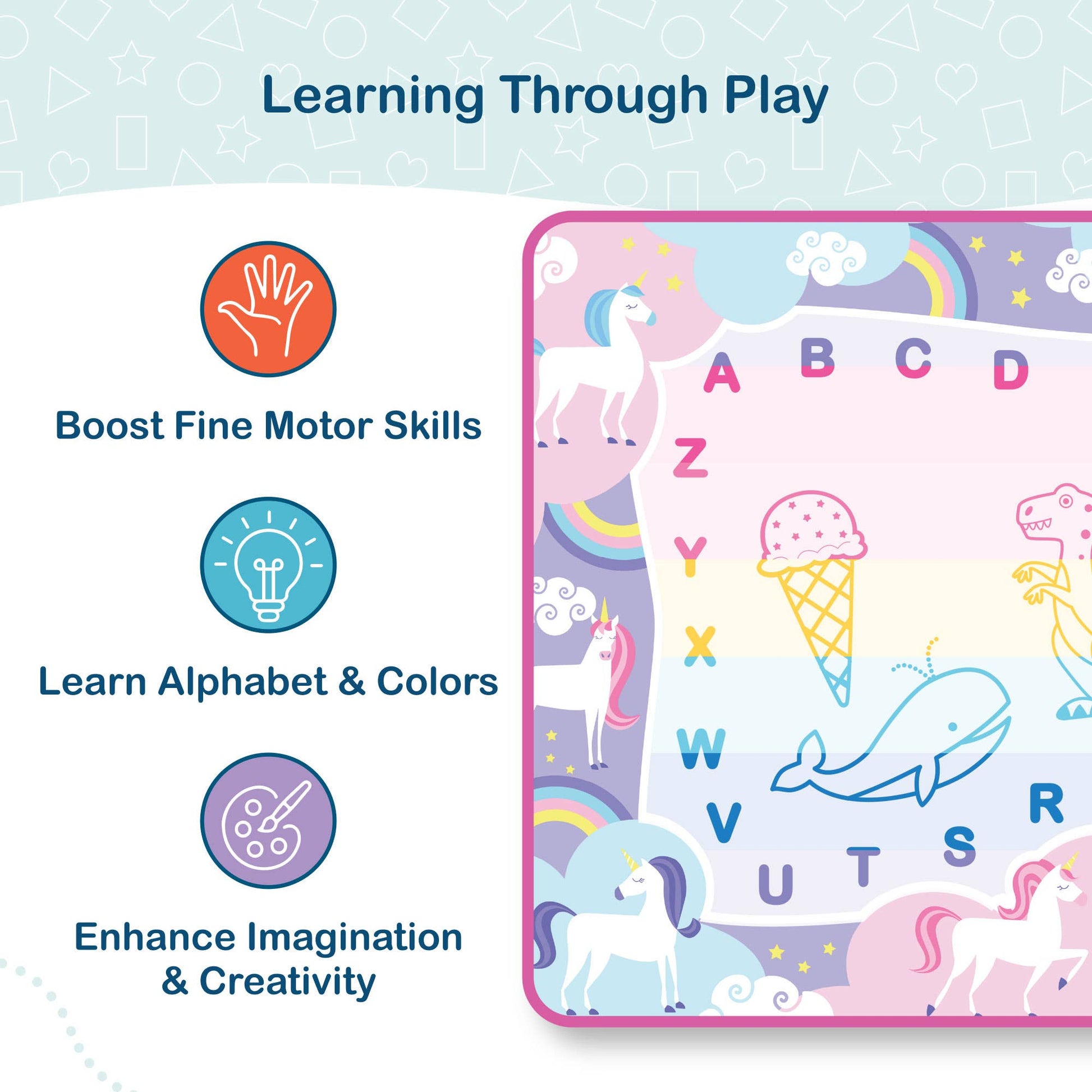 Learn While You Play – Features the full A–Z alphabet around the border to encourage early letter recognition and creative exploration.
