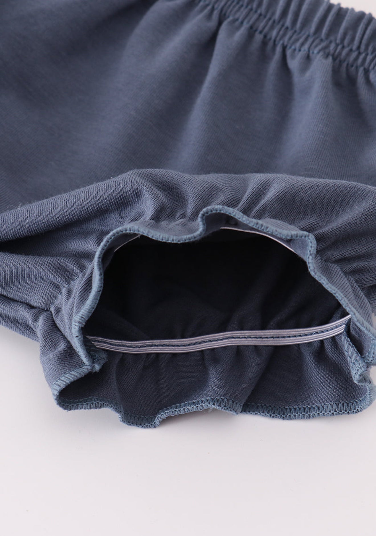 Dress your little one in charm with this navy stripe bloomer set featuring adorable deer embroidery. Soft and comfy, it's perfect for playful days and cozy naps alike. The classic stripes add a timeless touch, while the cute deer detail brings a sprinkle of whimsy to every outfit.