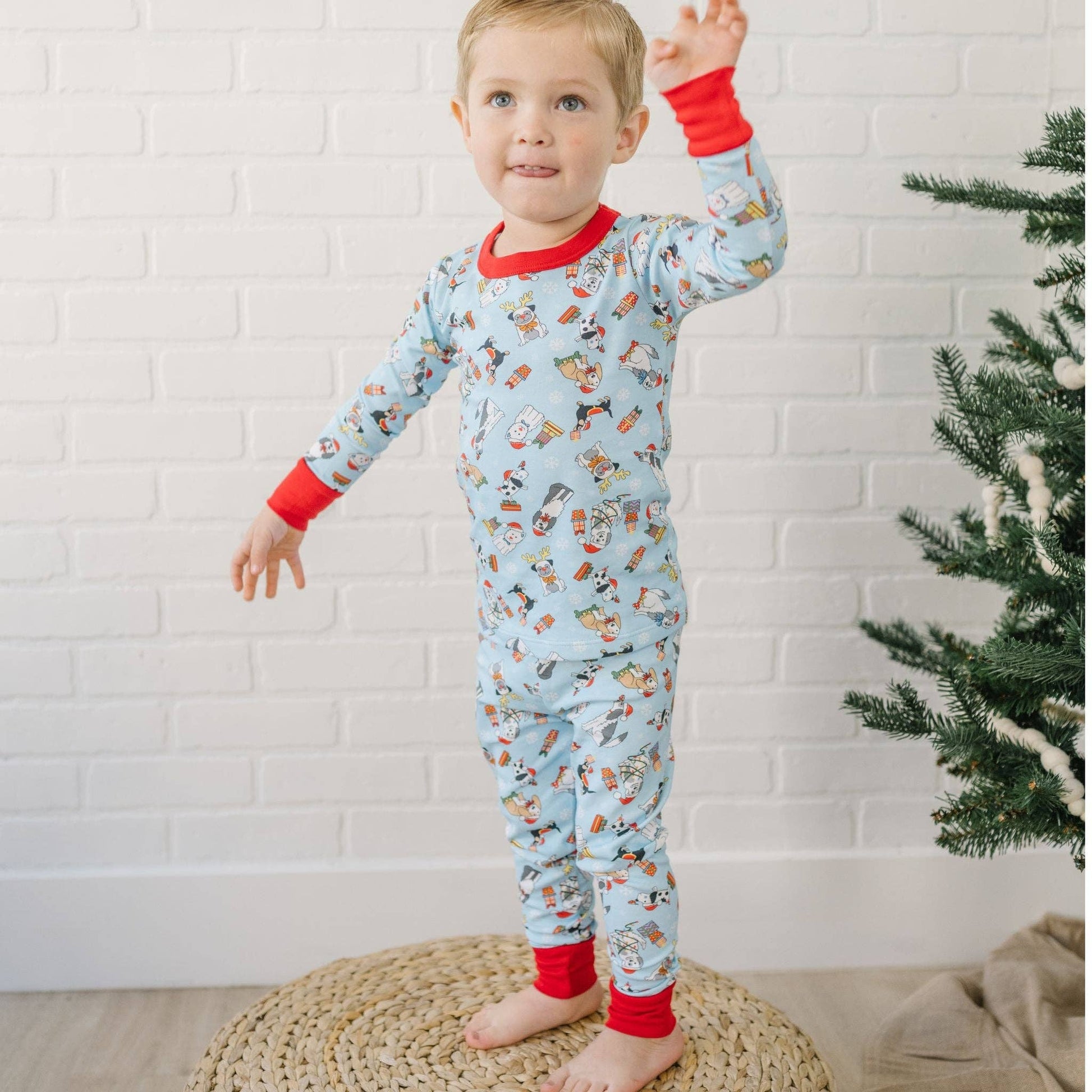 Perfect for a pawsitively cozy Christmas, these Magnolia Baby Yappy Pima Cotton Long Pajamas will have your little one barking joyfully. Crafted from ultra-soft Pima cotton with a playful print of furry friends in their holiday best, these jammies are pawfect for snuggles and snoozes all night long! Deck the halls with cuddles and cuteness this season.