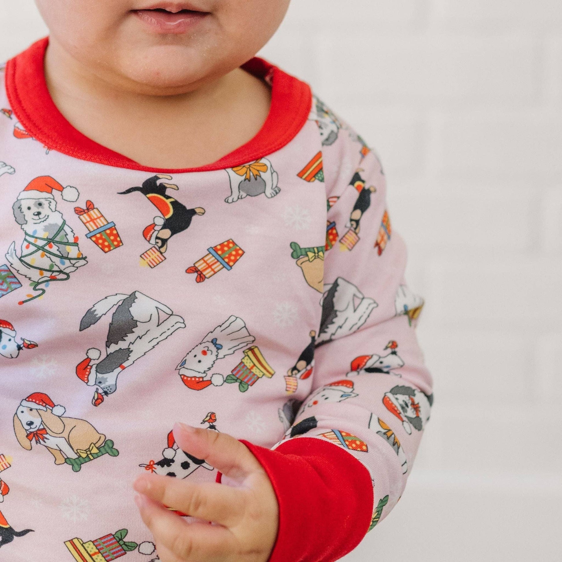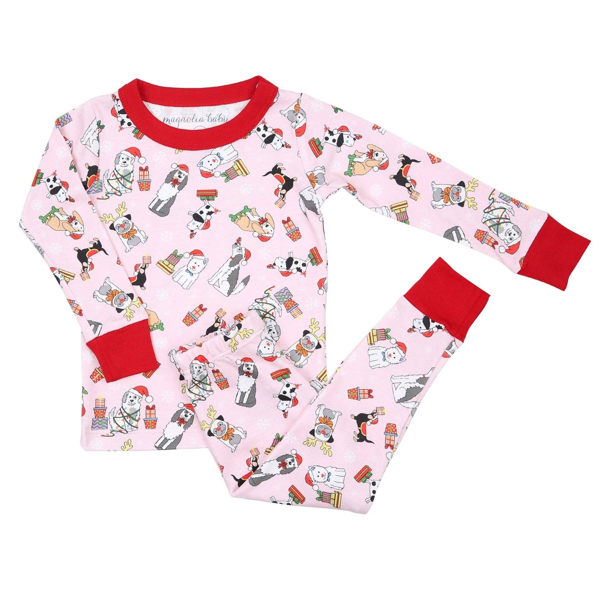 Deck the halls with boughs of holly… and these adorable Magnolia Baby Yappy Christmas Pima Cotton Long Pajamas! Featuring a delightful all-over print of playful pups in their holiday finest, these pajamas will make your little girl the star of the Christmas season. Crafted from the softest Pima cotton, these pajamas are as comfy as they are cute, ensuring sweet dreams all night long.
